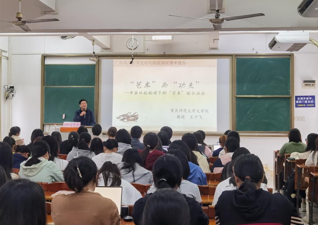 11月20日下午,重庆师范大学文学院王于飞教授应邀到我院,在明德楼B1202教室作了一场题为《“艺术”与“功夫”——中西比较视域下的“艺术”观念探源》的学术报告。报告由院长邓建教授主持,师生120余人到场聆听。