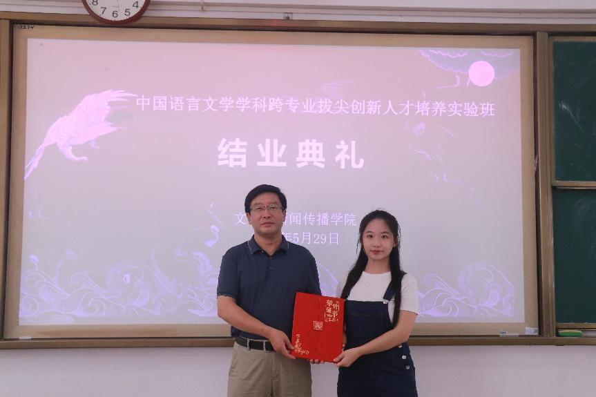 5月29日上午,久久久成人中国语言文学学科跨专业拔尖创新人才培养实验班结业典礼在明德楼B2301室举行,学院院长邓建、中文系主任张伟、中文系副主任裴梦苏及教师代表与创新实验班2025届学生共40余人共同见证这一青春盛典。