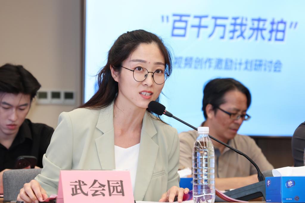 研讨会环节,武会园作为高校教师代表,发表了题为《扎根乡土,见微知著,以情动人——让大学生成为“破壁者”》的主题演讲。她着重强调,作为创作者需精准把握四组核心关系,即宏大叙事与微观切口相呼应、记录现象与挖掘内涵相联动、客观呈现与主观视角相平衡、技术应用与内容为王相统一。作为高校教育工作者,武会园倡议让能够“走出去、沉下心、干起来”的大学生们成为“百千万我来拍”的“破壁者”。大学生应扎根田野,深挖“人”与“过程”的内涵与价值;以小人物、小变化、小场景承载大主题;用真诚、真心、真情生动展现工程建设中破解难题的智慧。最后,她呼吁大家都要带着好奇心去发现、同理心去倾听、责任感去记录,让每一个鲜活的故事,每一个奋斗的身影,每一个微小的变化,都成为“百千万工程”创新实践的鲜活注脚。