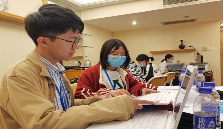 志愿者撰写简报现场