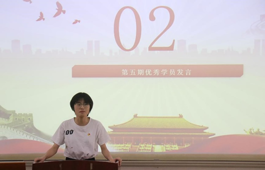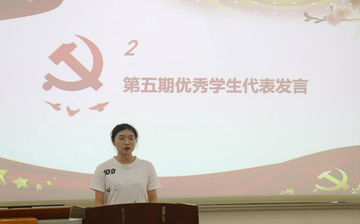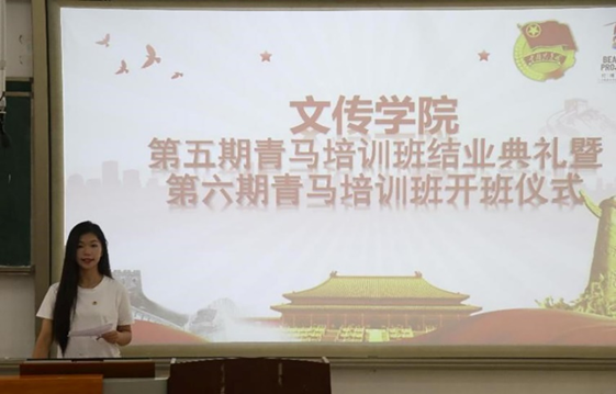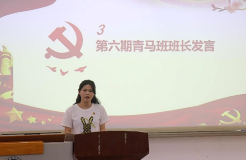 第五期结业仪式结束后紧接着举行了第六期开班仪式。第五期青马班优秀学员黄颖瑶和第六期青马班班长方晓晓先后发言。黄颖瑶结合自身经历,勉励第六期学员学用结合,知行统一,积极参与各项活动,努力成为一名合格的青年马克思主义者。方晓晓倡议新一期青马班学员以一个马克思主义者的标准严格要求自己,坚持以身作则,发挥模范作用。