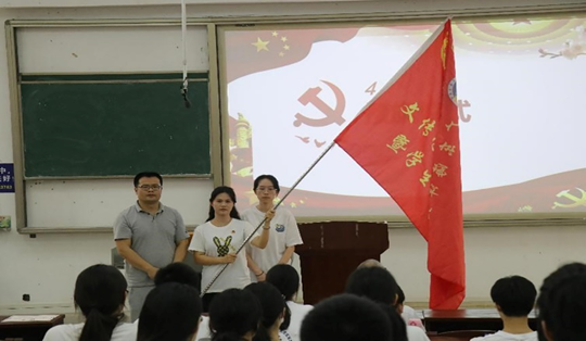 仪式最后,学院团委书记徐以国把青马班班旗交到新一期青马班班委手中,希望他们接过接力棒,带领新一期学员不断成长进步!