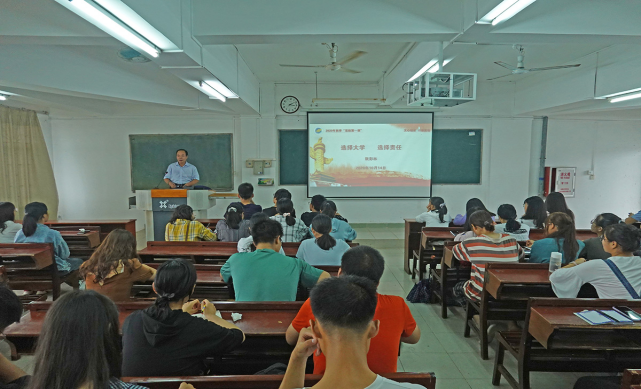 阮彭林书记以“选择大学,选择责任”为主题,阐述了大学是心灵的摇篮,是创造、保存人类文明的场所,是体验人生的重要转折点。新生应把握住大学这个成长成才的机会,认真思考三个问题:来大学干什么、在大学应该干什么、走出大学校门能够干什么,学会独立中体验自主,学会管理时间,学会独自承担责任,学会养成合作与团队意识,努力成为承担未来家庭、社会责任的优秀人才。他以一句“图书馆是比网吧更值得泡的地方”鼓励新生寻找安静、适合学习的地方读书,并结合“习近平主席在深圳经济特区建立40周年庆祝大会上的讲话”向新生提出抓住机会见证现代化强国建设、在实现中华民族伟大复兴中国梦的征程上,接续奋斗。最后,寄语广大同学,在学习中追求知行合一,在成才中追求做人的道理,在成功中追求社会的责任。