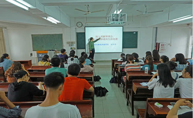孙长军院长以“深入理解和领会人与自然和谐共生的思想”为主题,联系《习近平谈治国理政》第三卷中的第十三个专题“促进人与自然和谐共生”,强化了新生班委对“中国为什么能”、“马克思主义为什么行”、“中国特色社会主义为什么好”的认识和理解。他讲解习近平主席关于“加强生态文明建设必须坚持的原则”和“坚决打好污染防治攻坚战”两个重要讲话内容,勉励新生班委在学习和生活中尊重自然,顺应自然,保护自然,并联系“道法自然”和“天人合一”的中国传统文化智慧,强调人与自然互为共生,和谐相处的必要性。他把《习近平谈治国理政》与马克思的《巴黎手稿》联系起来,讲述了“人的精神的无机界”、“人的无机的身体”和“自然人化”的命题,勉励新生班委用劳动实践把自然人化,正确认识并改造自然界,从人与自然关系处理中学会实现社会化的重要性;由此对20级新生提出深入理解和领会人与自然和谐共生的思想,为中华民族伟大复兴努力奋斗的希望。